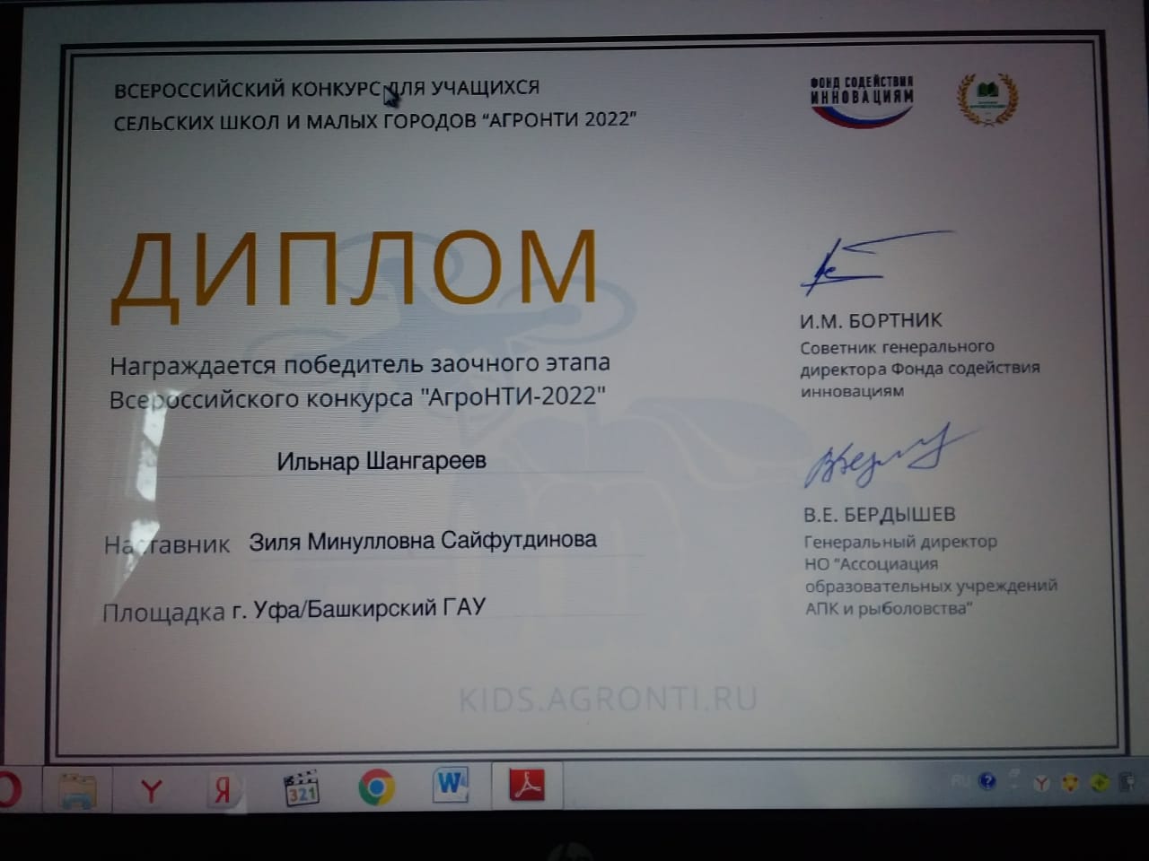 Учащиеся 7 класса Шангареев Ильнар и Кутлуева Индира участвовали во Всероссийском конкурсе для учащихся сельских школ и малых городов «АгроНТИ-2022».