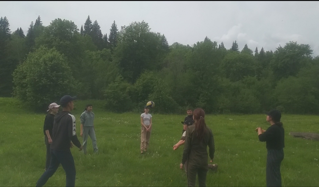 Вскоре мы пришли к месту нашего похода. Сняли рюкзаки, выбрали место для расположения своего класса. Наметили место для мусора и начали обустраивать быт. Затем провели зарядку на свежем воздухе и играли в различные спортивные игры. После соревнования – небольшой перекус.