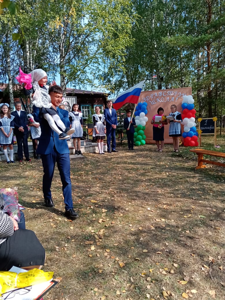 Нарядные ученики и ученицы с пестрыми букетами цветов, учителя и родители заполнили школьный двор. Звучит музыка, и все классы строятся на школьном дворе. Все застыли на торжественной линейке под звуки гимна России и республики Башкортостан. Всё наполнено торжеством и гордостью, что ты частичка этого действа, этого великого праздника Дня Знаний. Ведь знание каждого из нас – это будущее каждого из нас, это будущее страны. Торжественная линейка объявляется открытой. По традиции первыми представляют малышей-первоклассников, их в этом году 10. Директор школы Фарзана Мударисовна поздравила учащихся школы с новым учебным годом, отметив, что учение - нелегкий, но радостный и увлекательный труд. Пусть новый учебный год станет для всех ярким и плодотворным, пусть будет наполнен творчеством, интересным и полезным общением, духовно, интеллектуально обогатит и ребят, и их педагогов. С ответным словом выступила группа малышей - первоклассников, которые с выражением прочли выученные стихи, спели песни. Наступило время первого школьного звонка в этом учебном году. Это почетное право было предоставлено ученику 9 класса Акрамову Камилю и первокласснице Хатмуллиной Марьям..