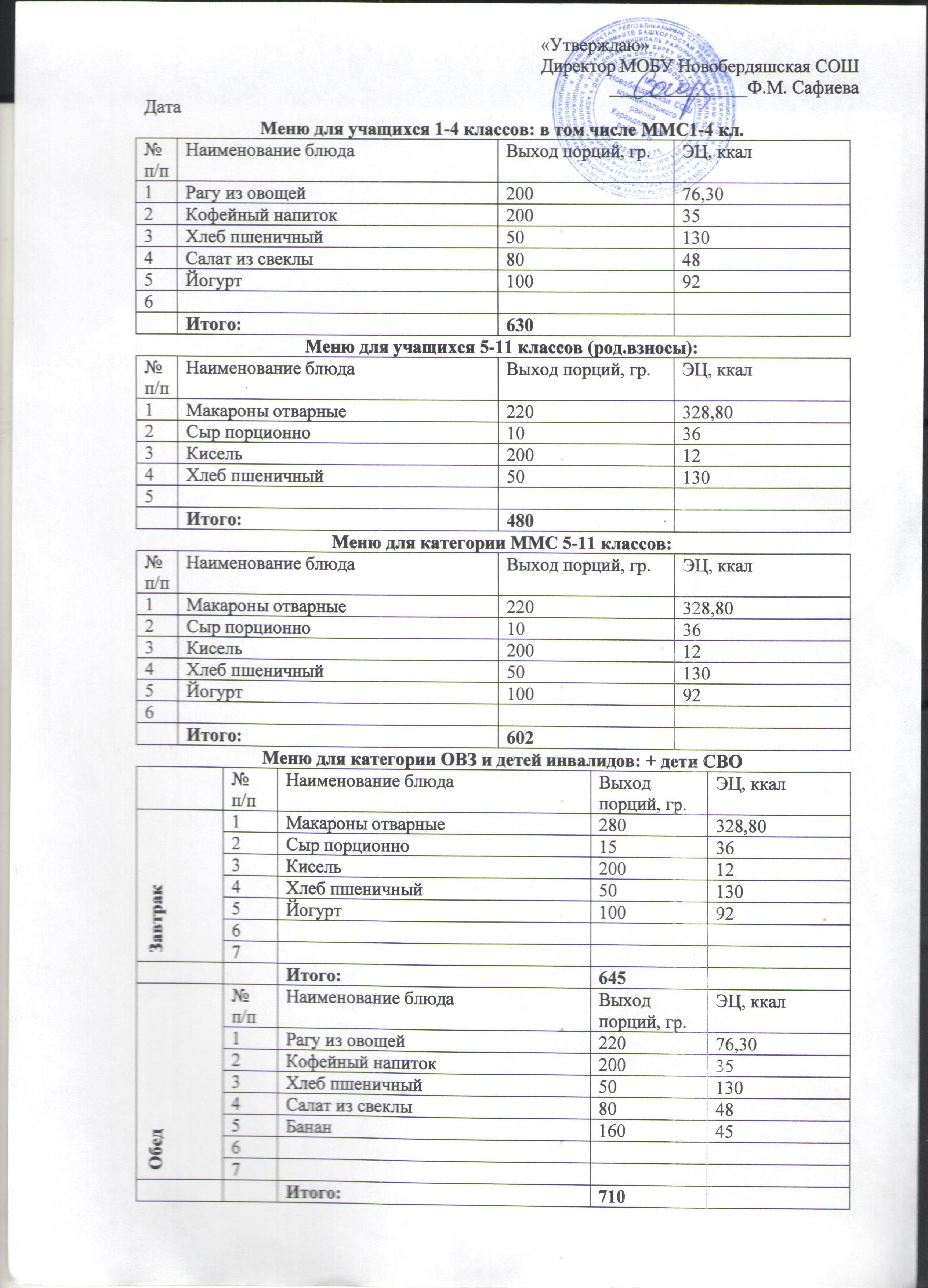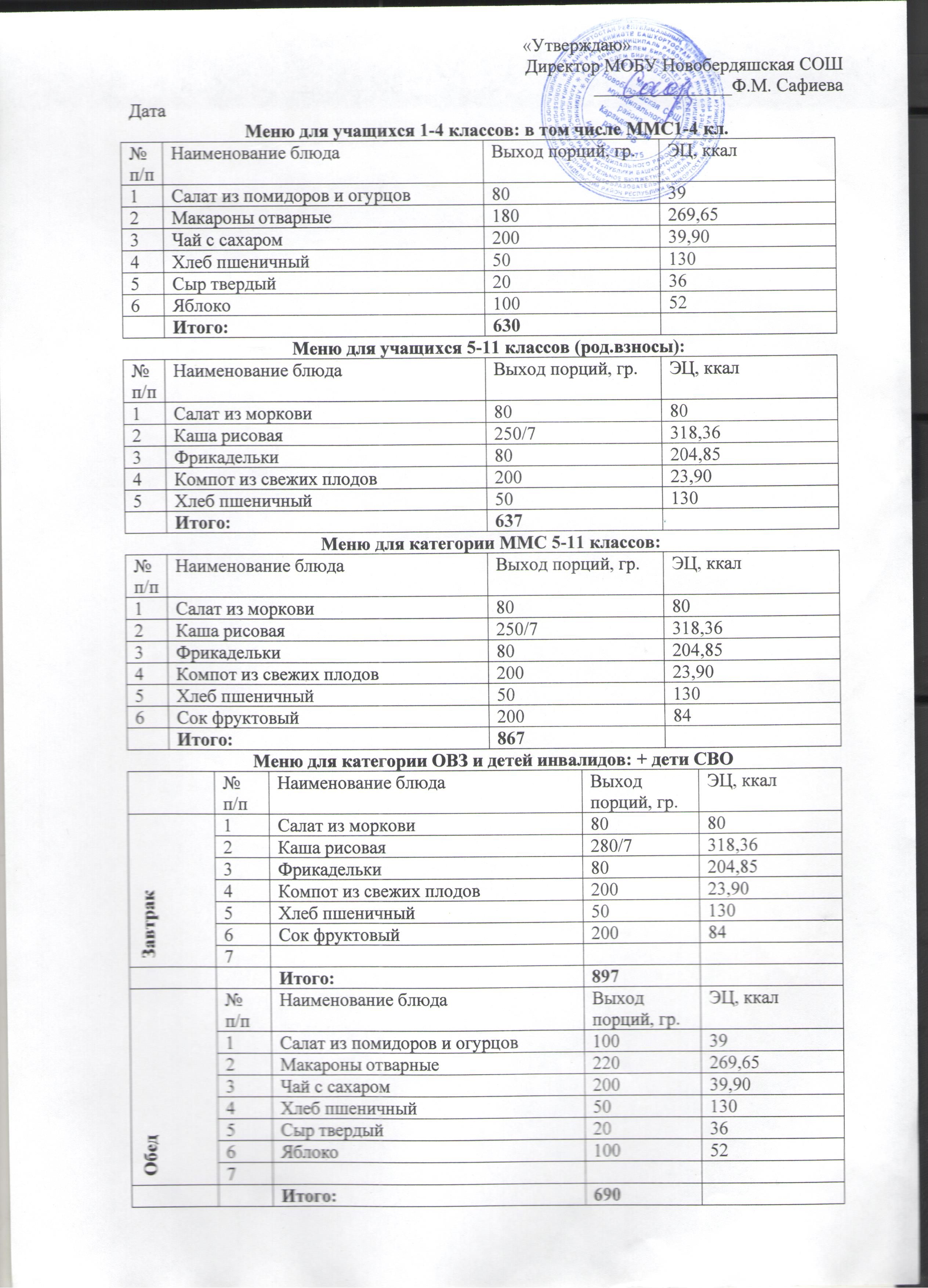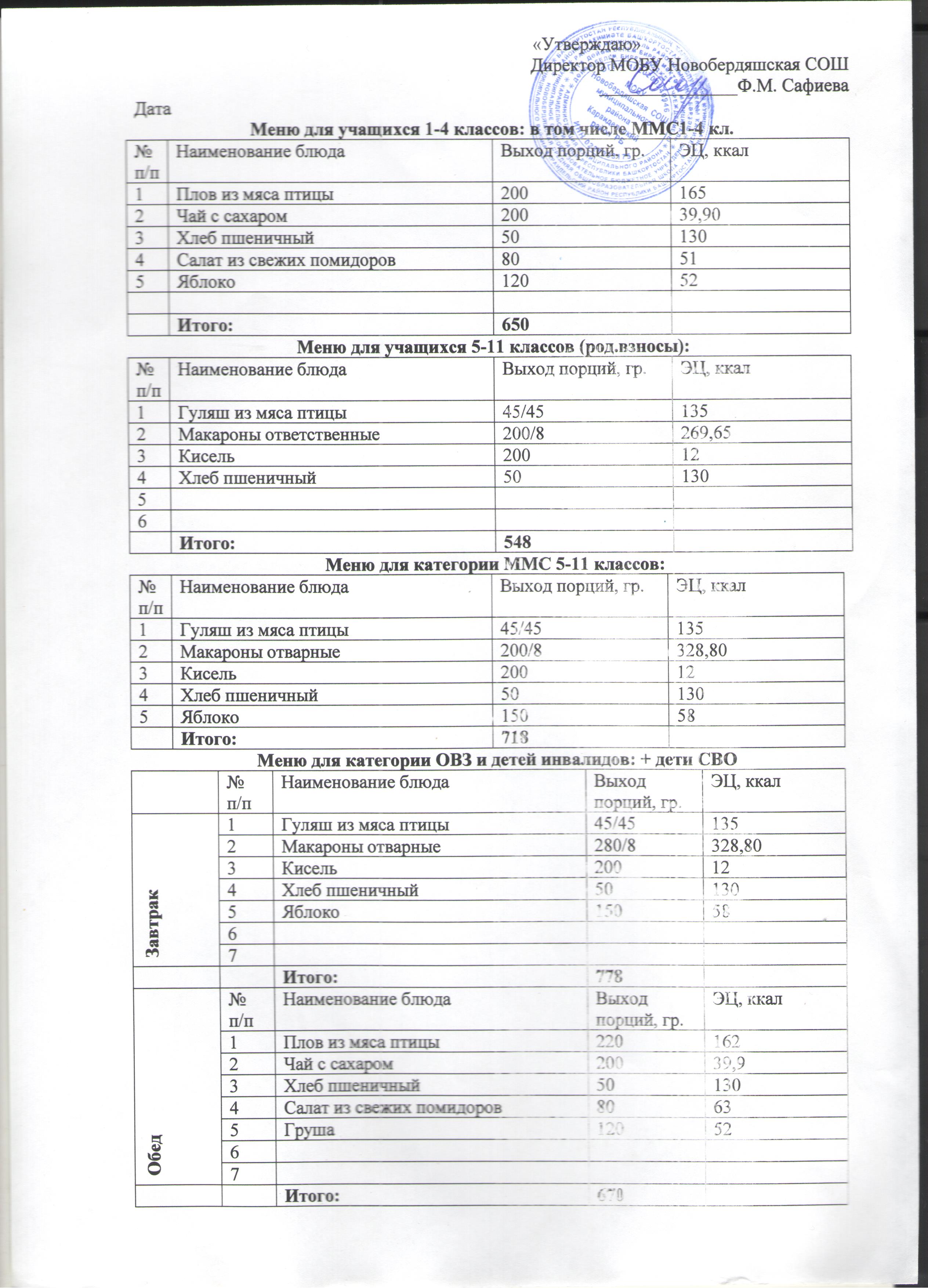 (Меню на 28 ноября)