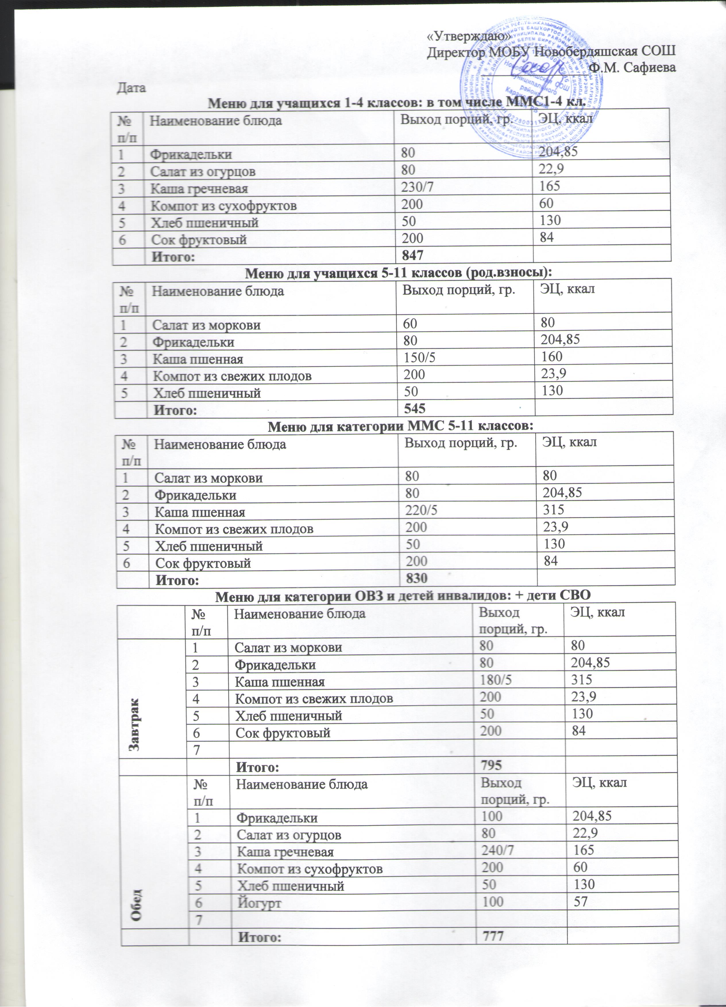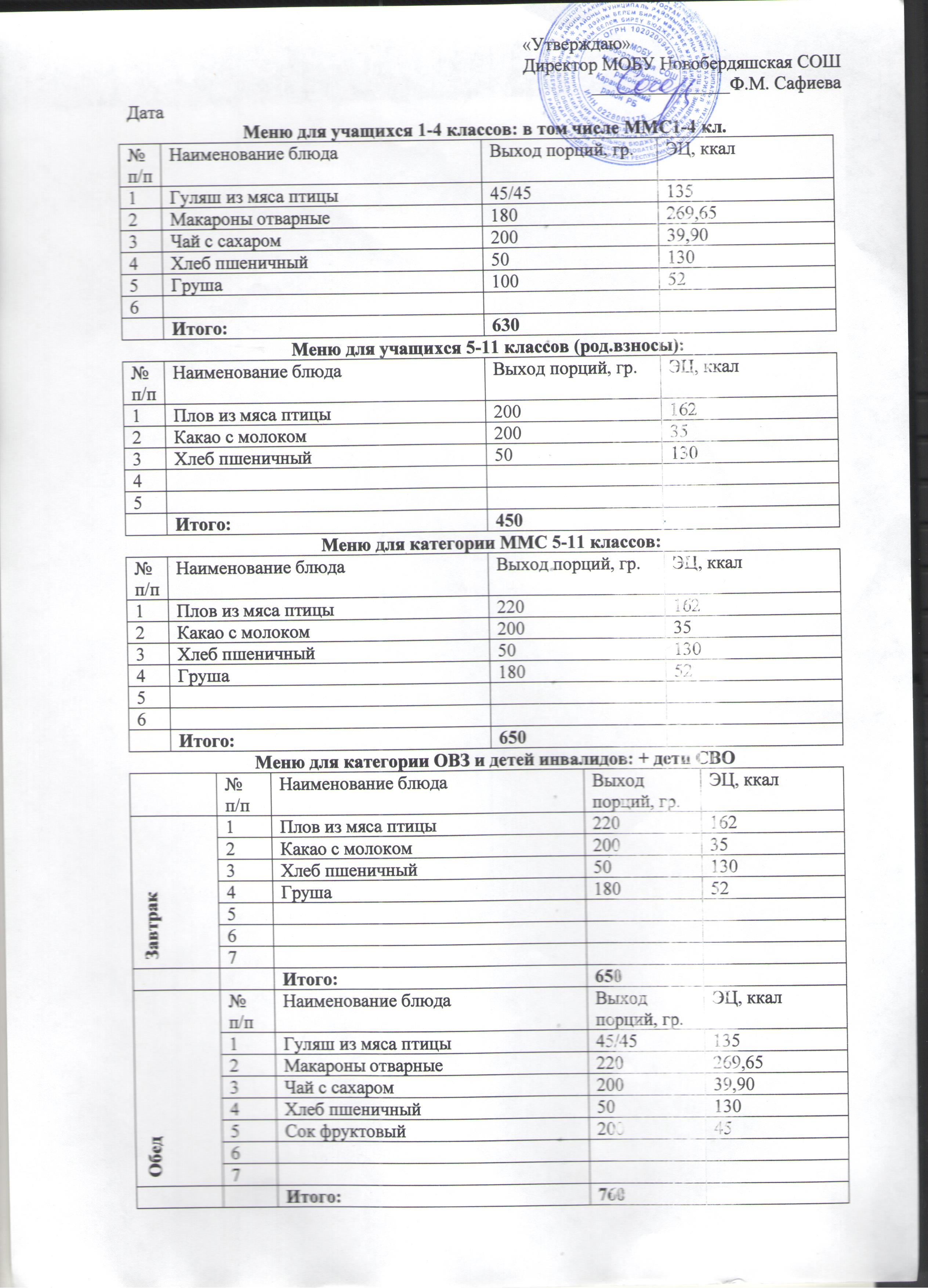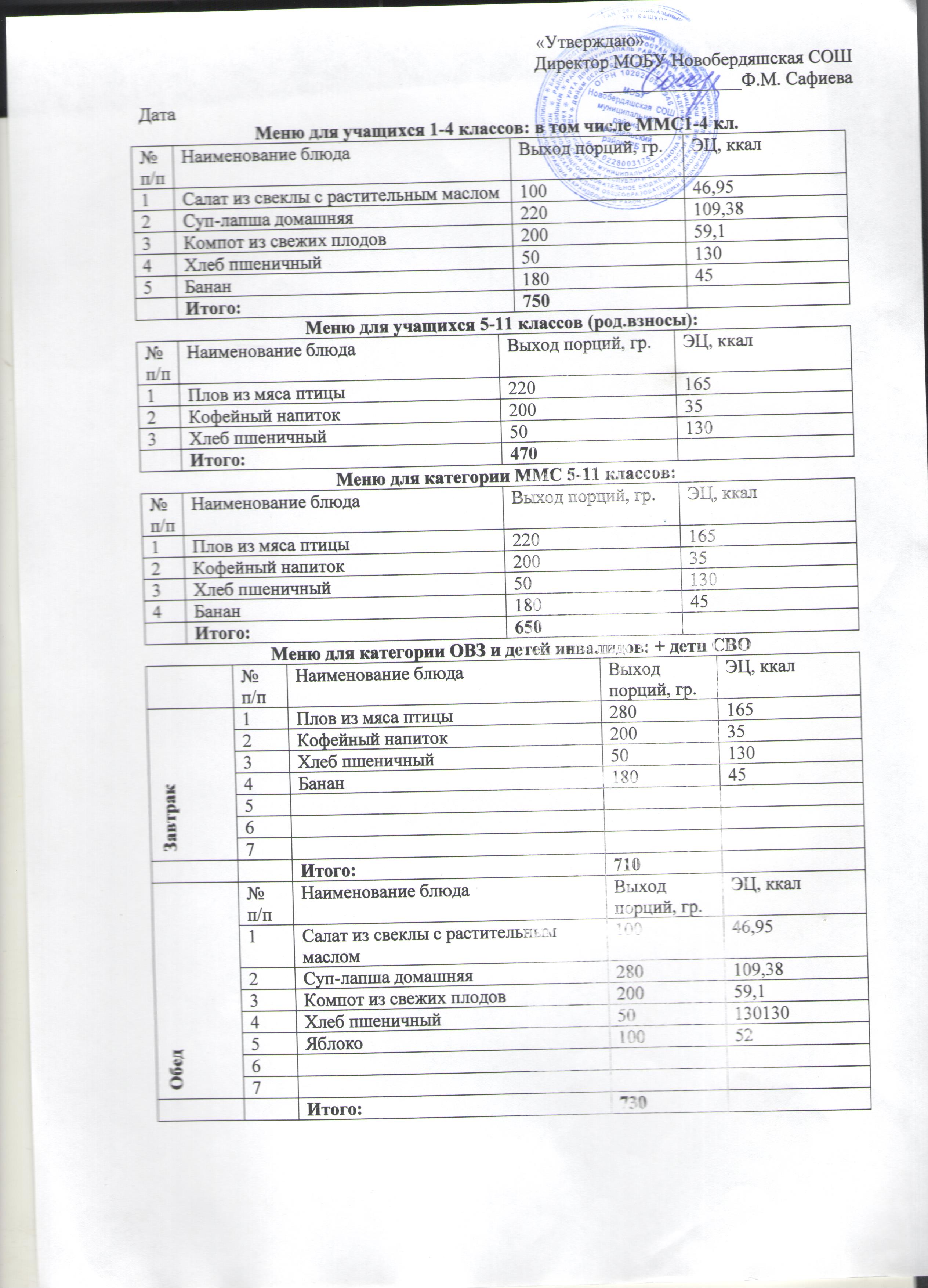 (Меню на 28 ноября)