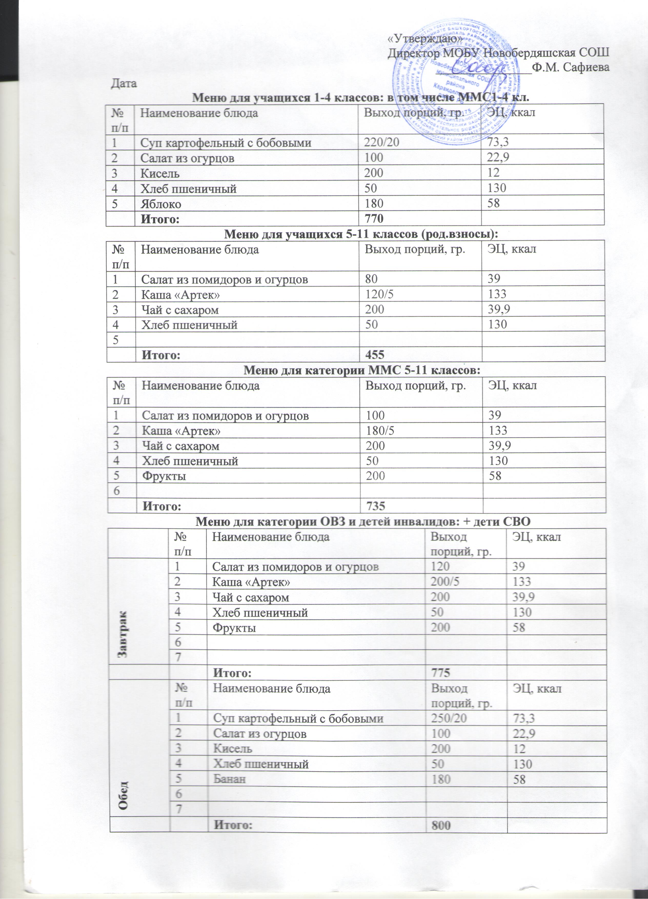 (Меню на 4 декабря)