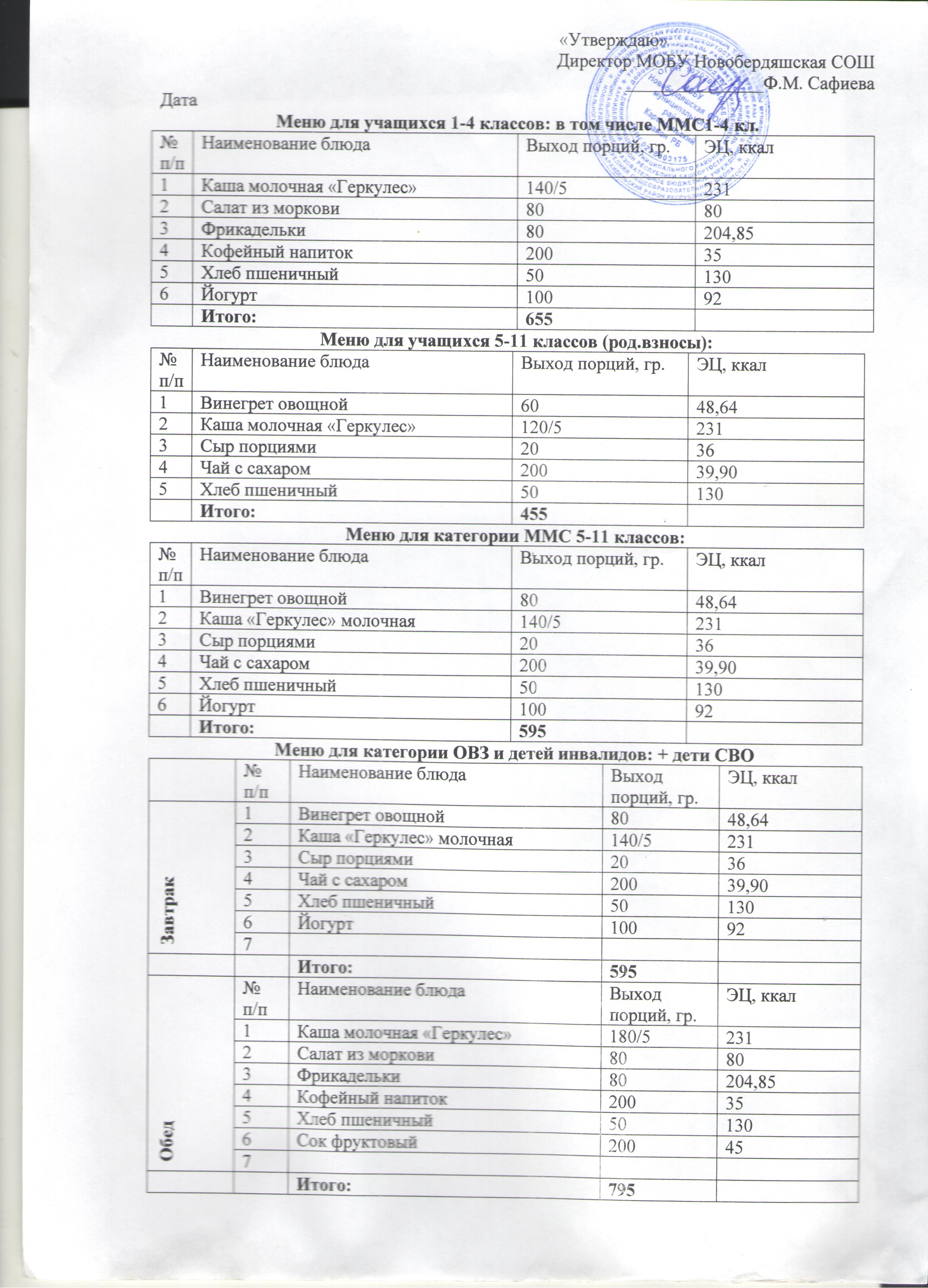 (Меню на 9 декабря)