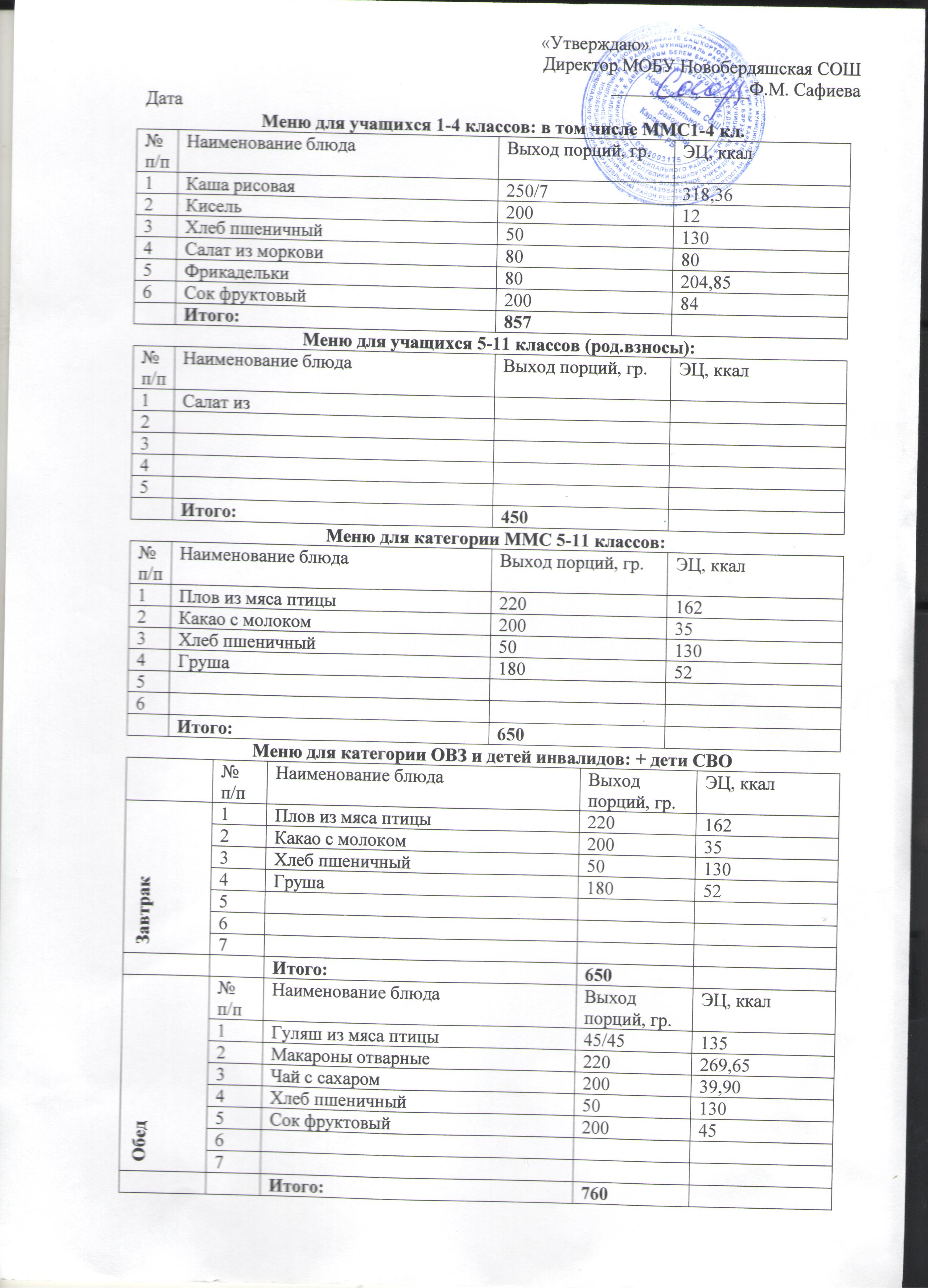 (Меню на 11 ноября)