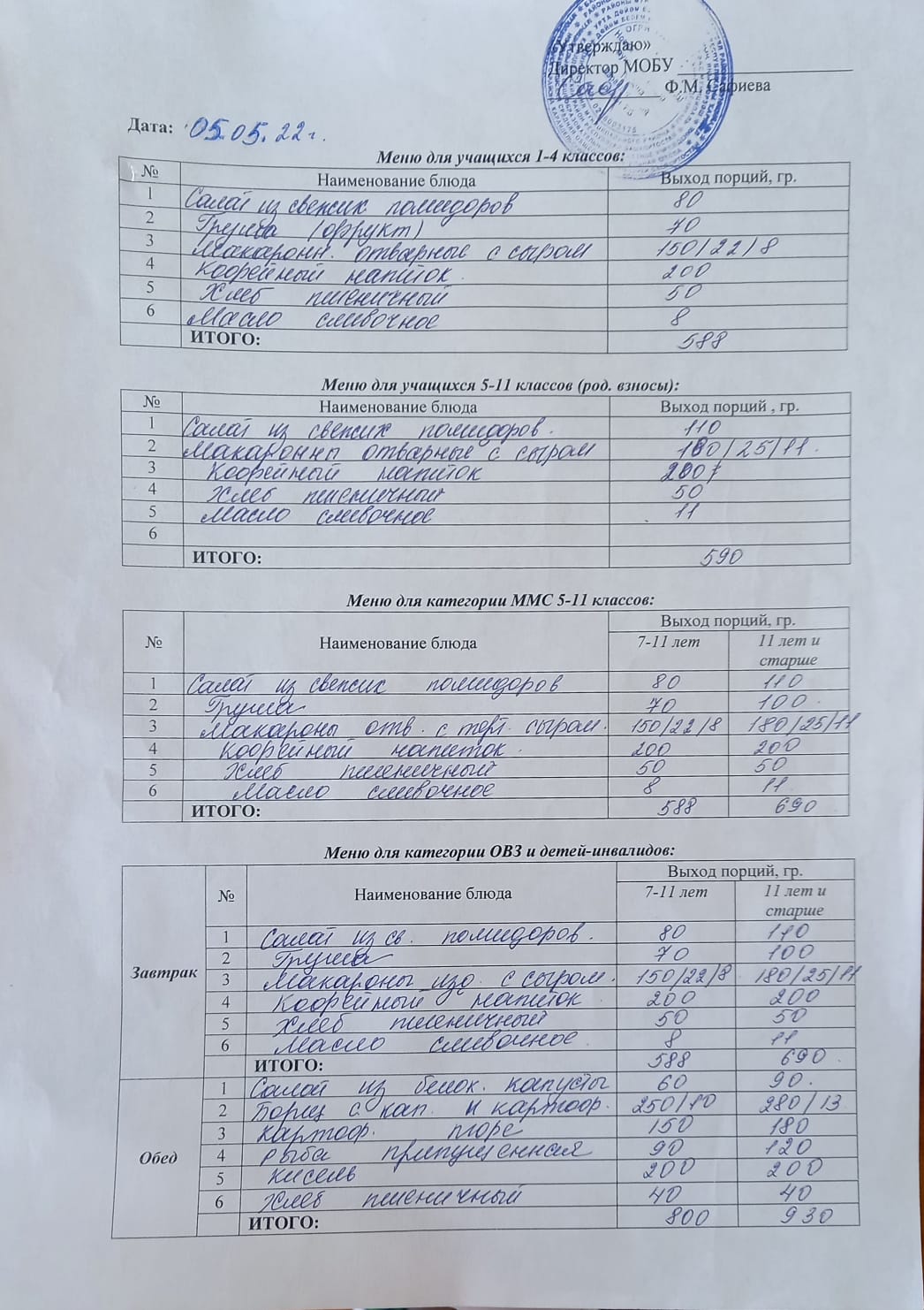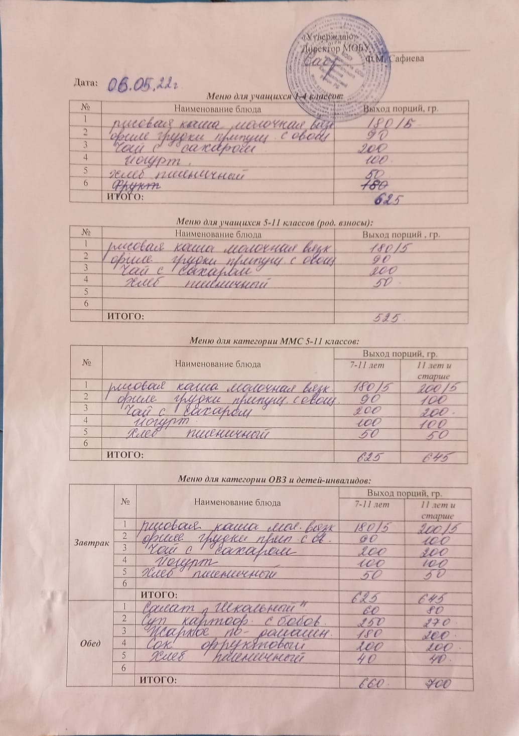 (Меню на 6 мая)