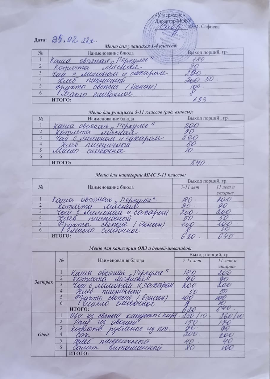 (Меню на 25 февраля)