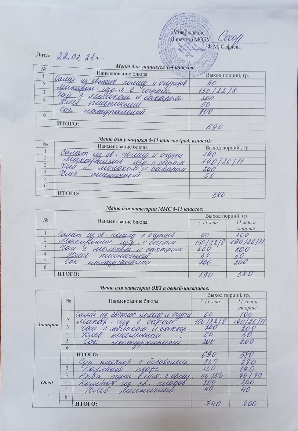 (Меню на 22 февраля)