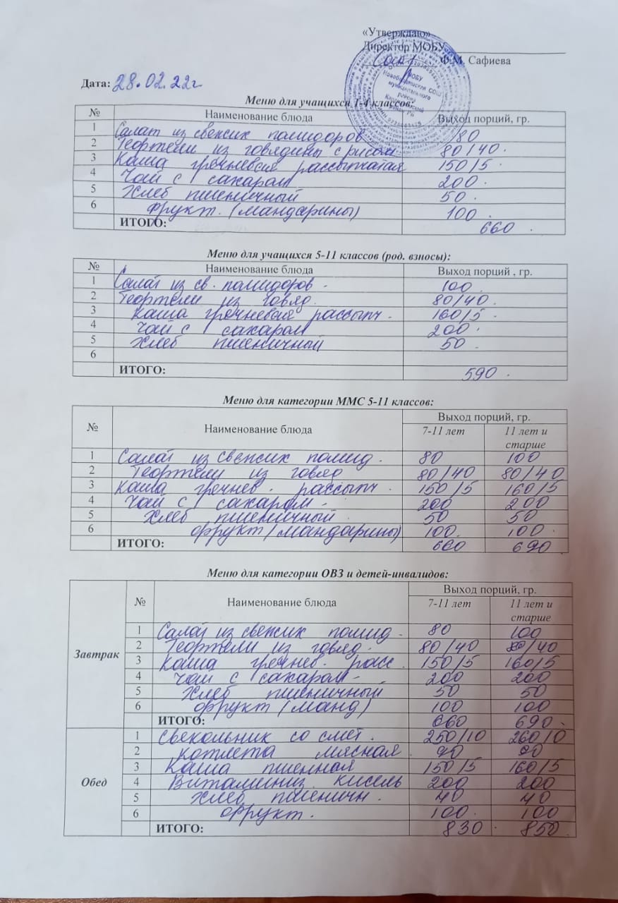 (Меню на 28 февраля)