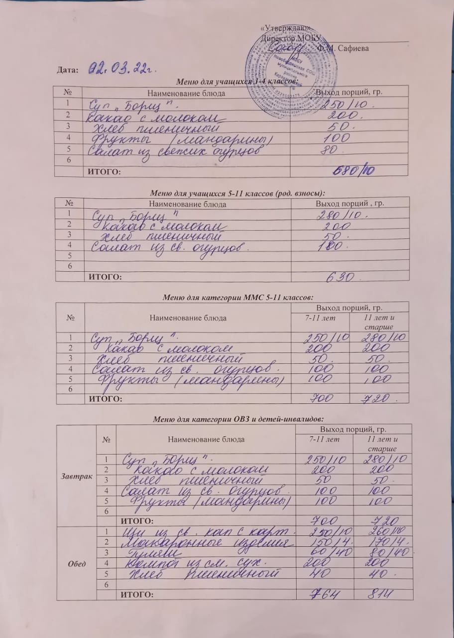 (Меню на 2 марта)