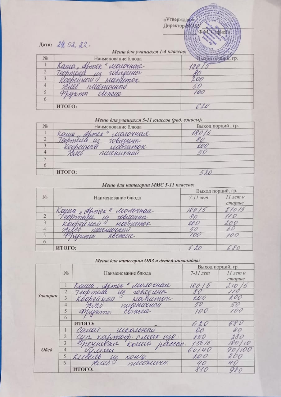 (Меню на 24 февраля)