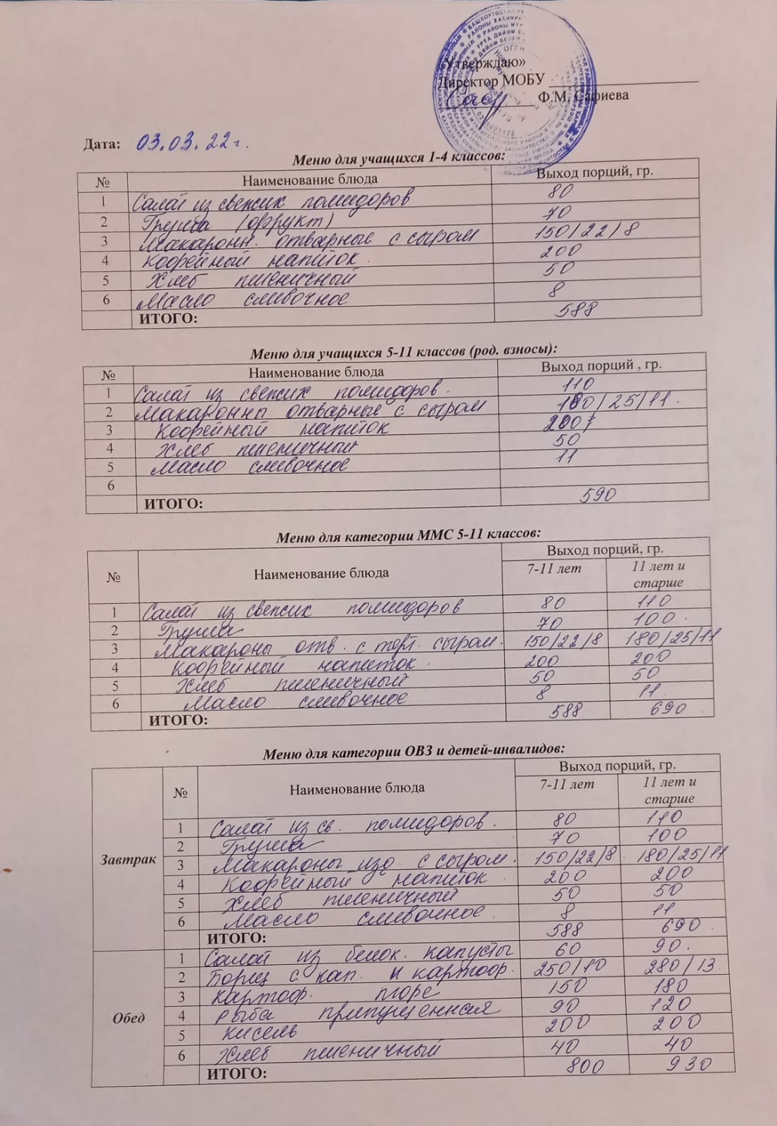 (Меню на 4 марта)