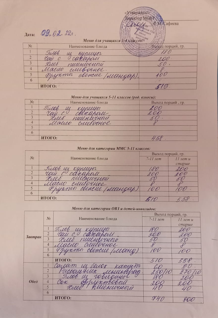 (Меню на 9 февраля)