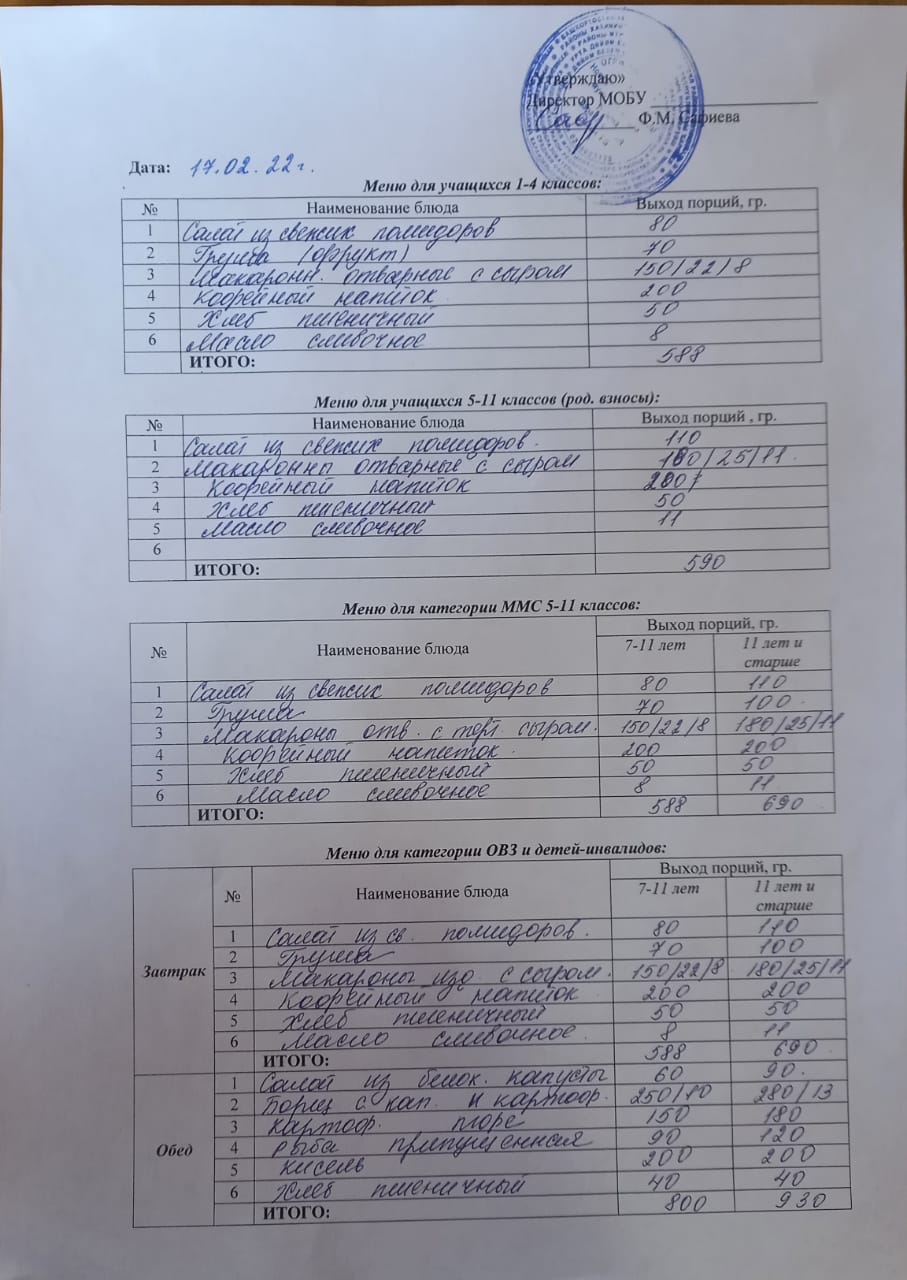 (Меню на 17 февраля)