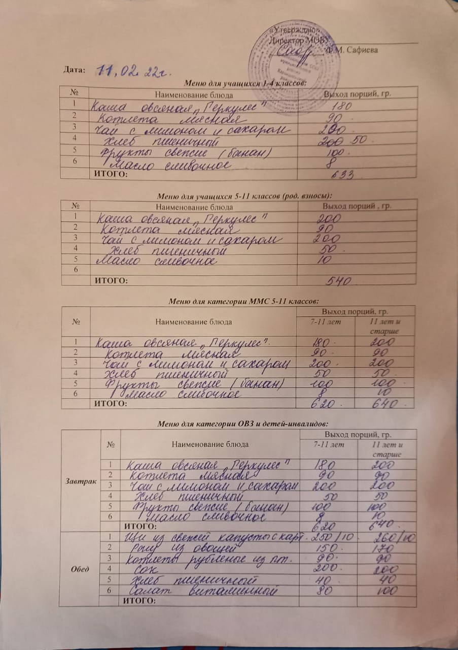 (Меню на 11 февраля)