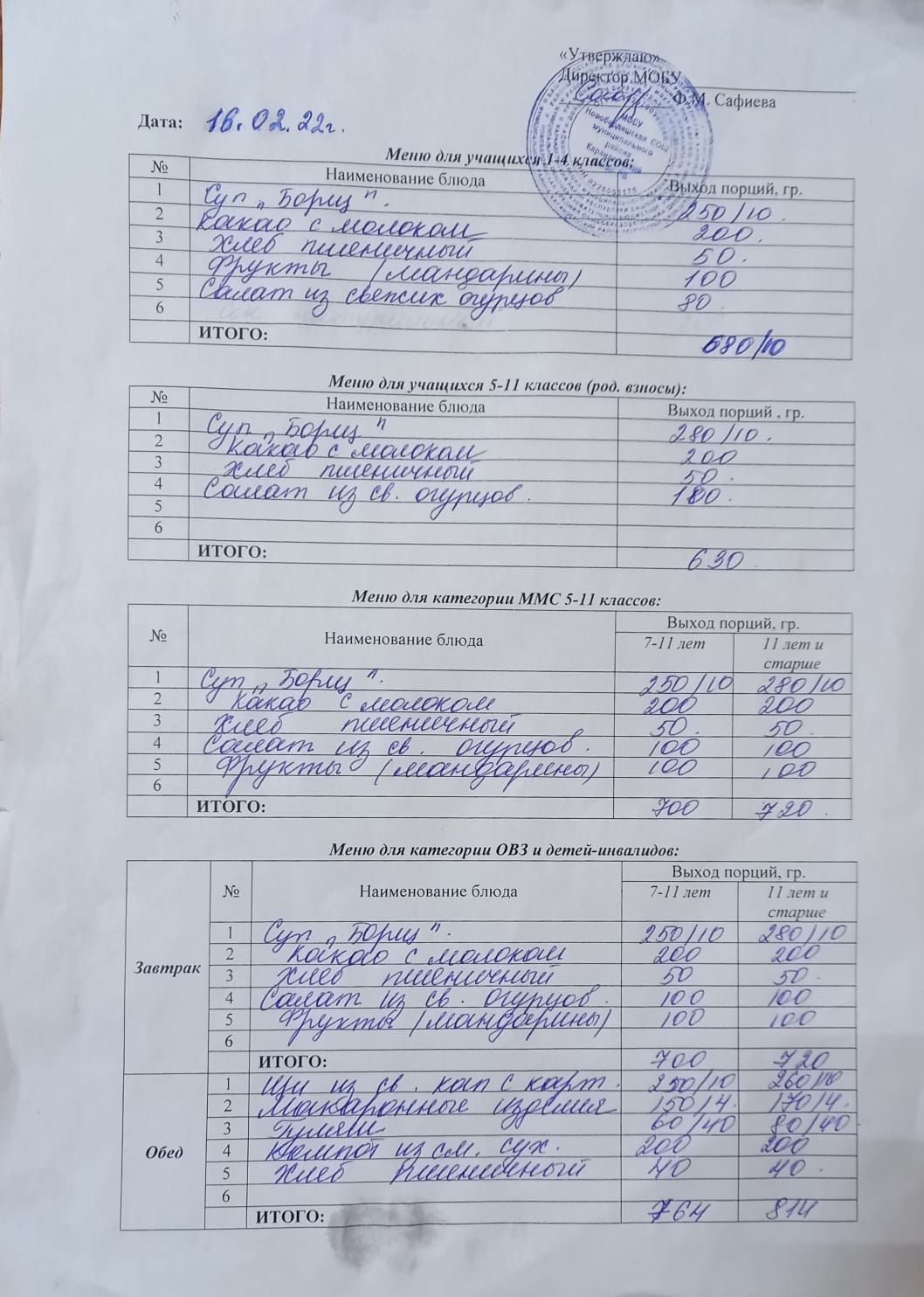(Меню на 16 февраля)