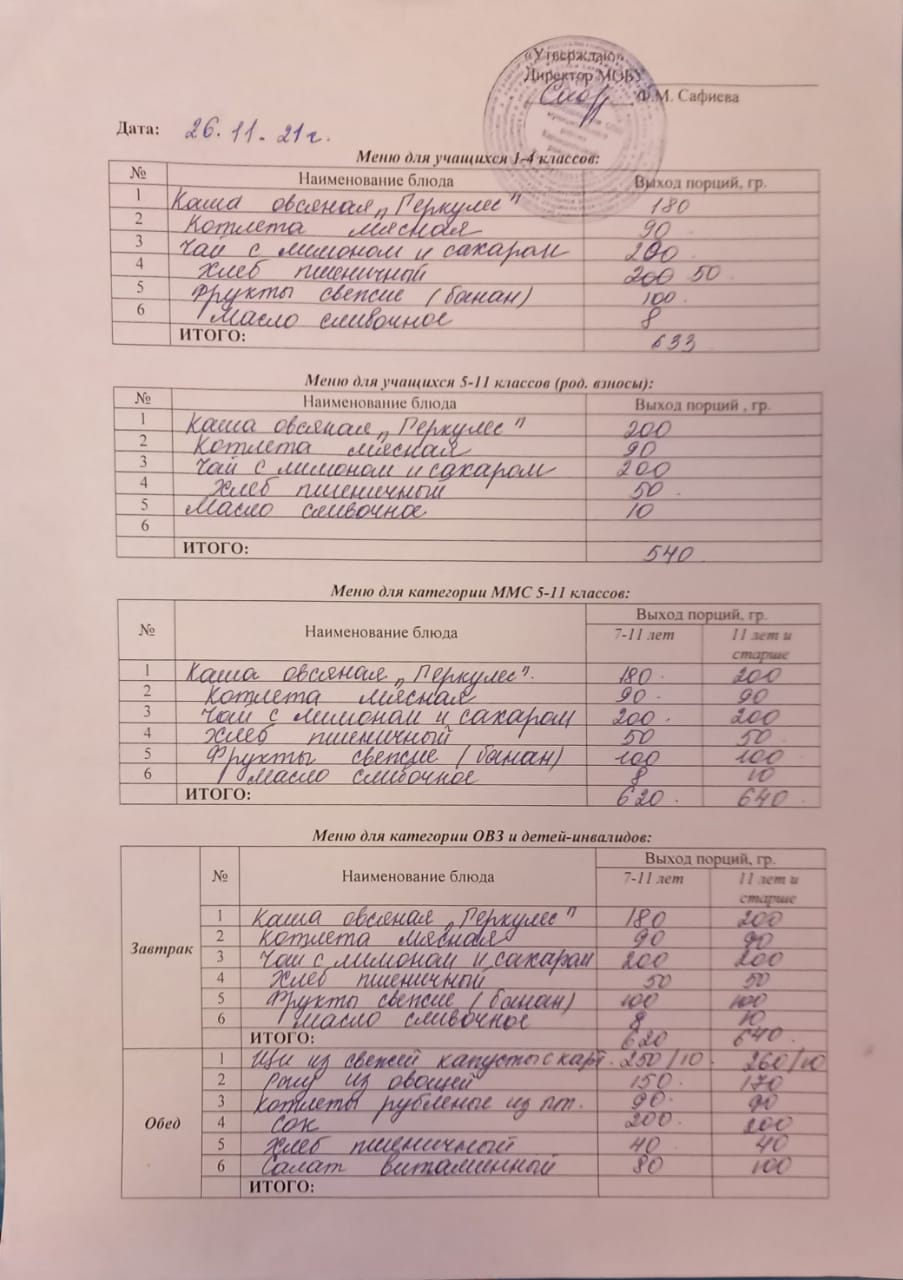 (Меню на 26 ноября)