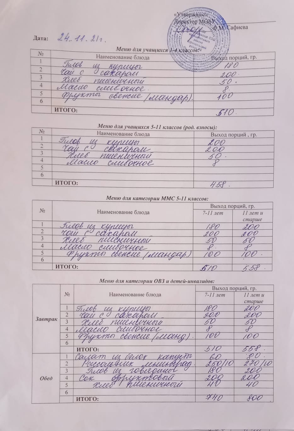 (Меню на 24 ноября)