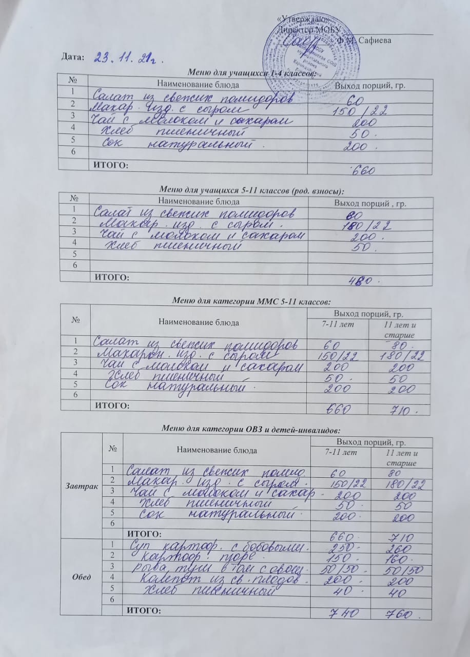 (Меню на 23 ноября)