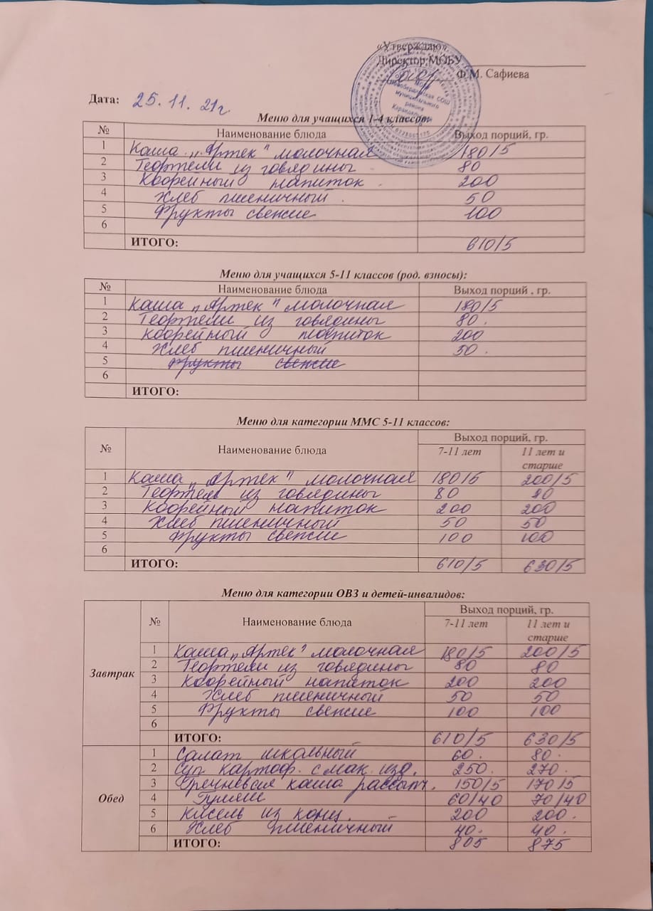 (Меню на 25 ноября)