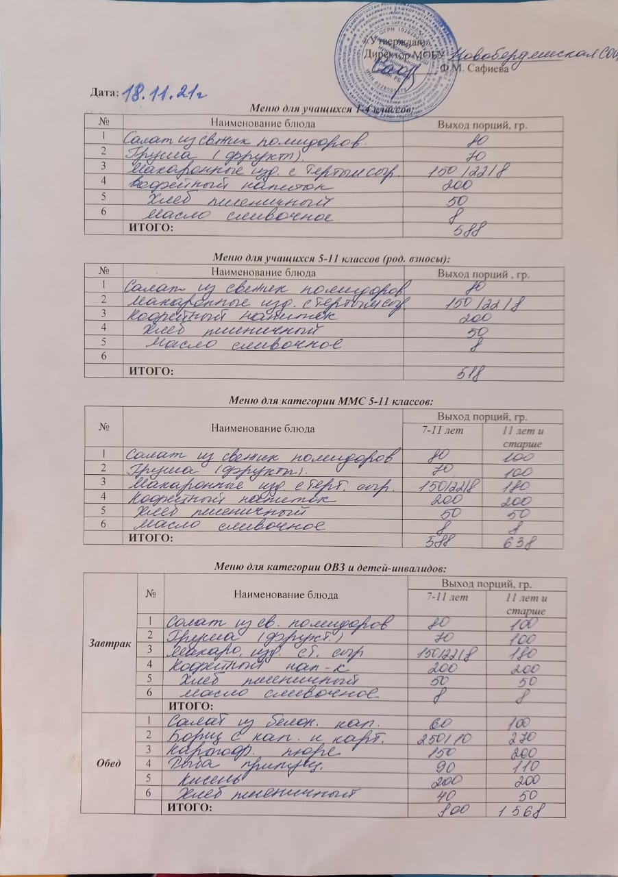 (Меню на 18 ноября)