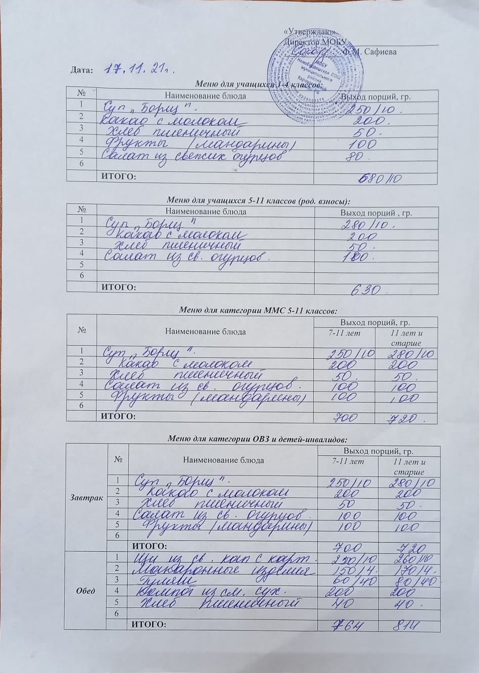 (Меню на 17 ноября)
