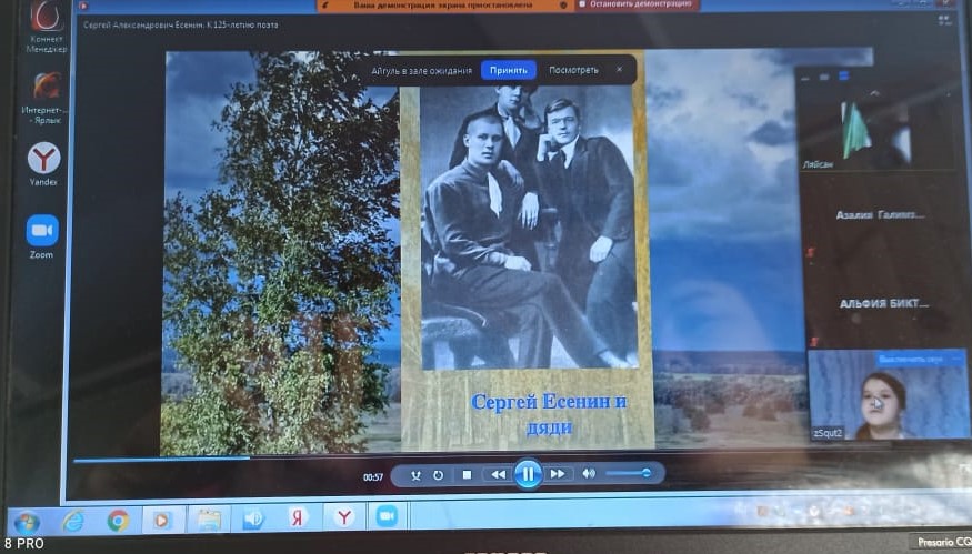 29 октября, учитель русского языка и литературы МОБУ Новобердяшская СОШ Ильясова Сирена Фаатовна провела онлайн конференцию "Есенин-певец родной природы" к 125-летию со дня рождения поэта.